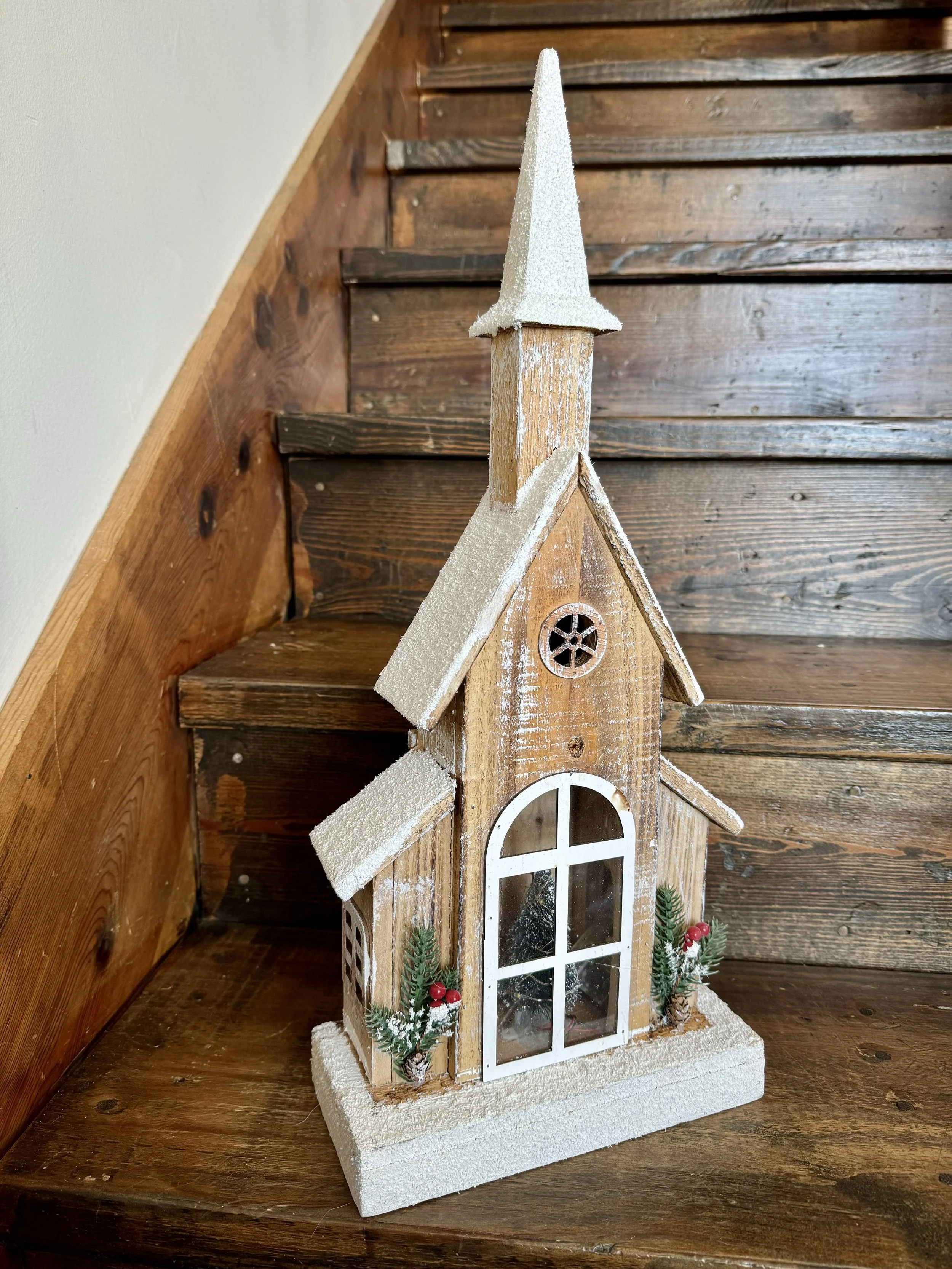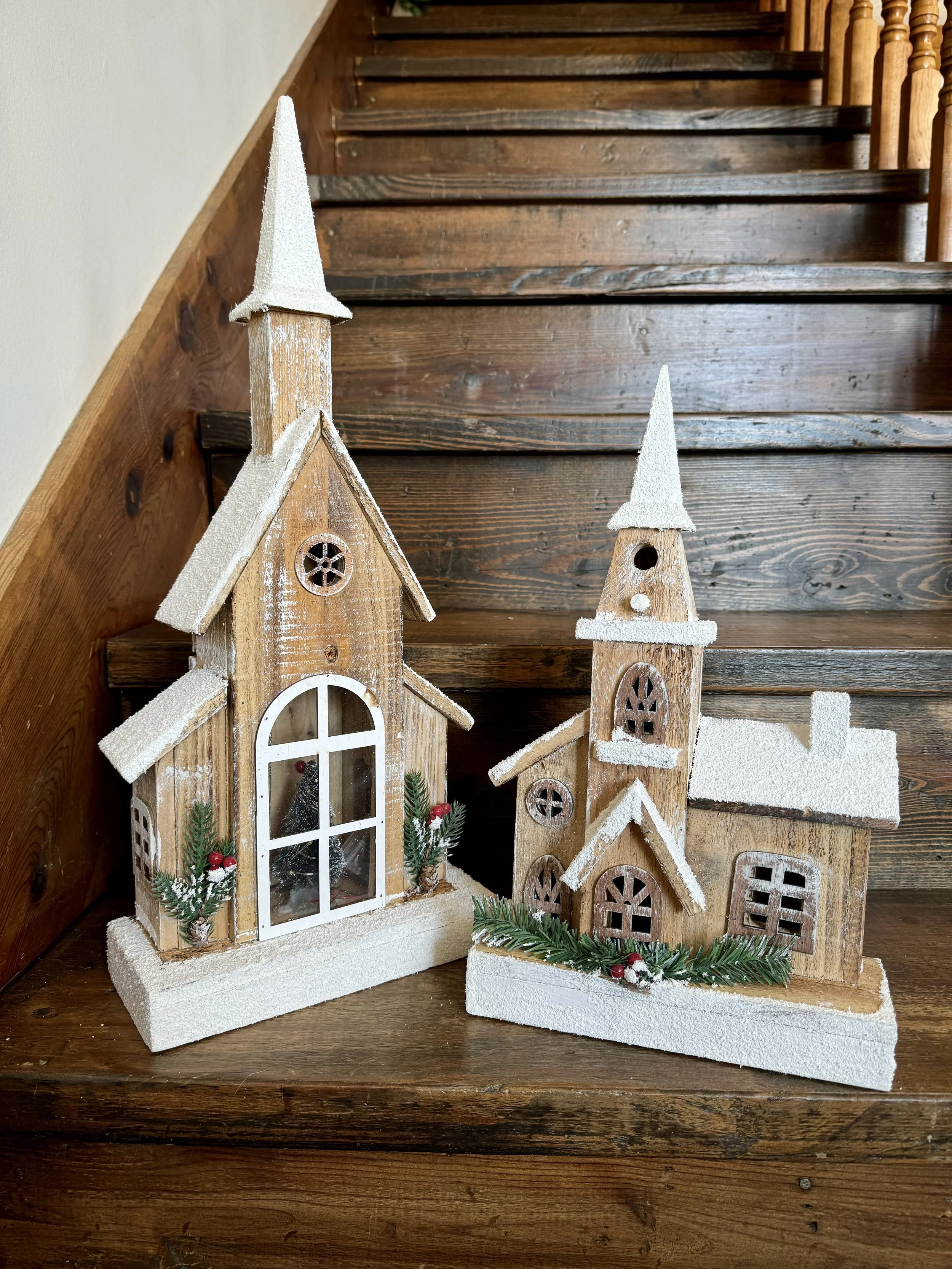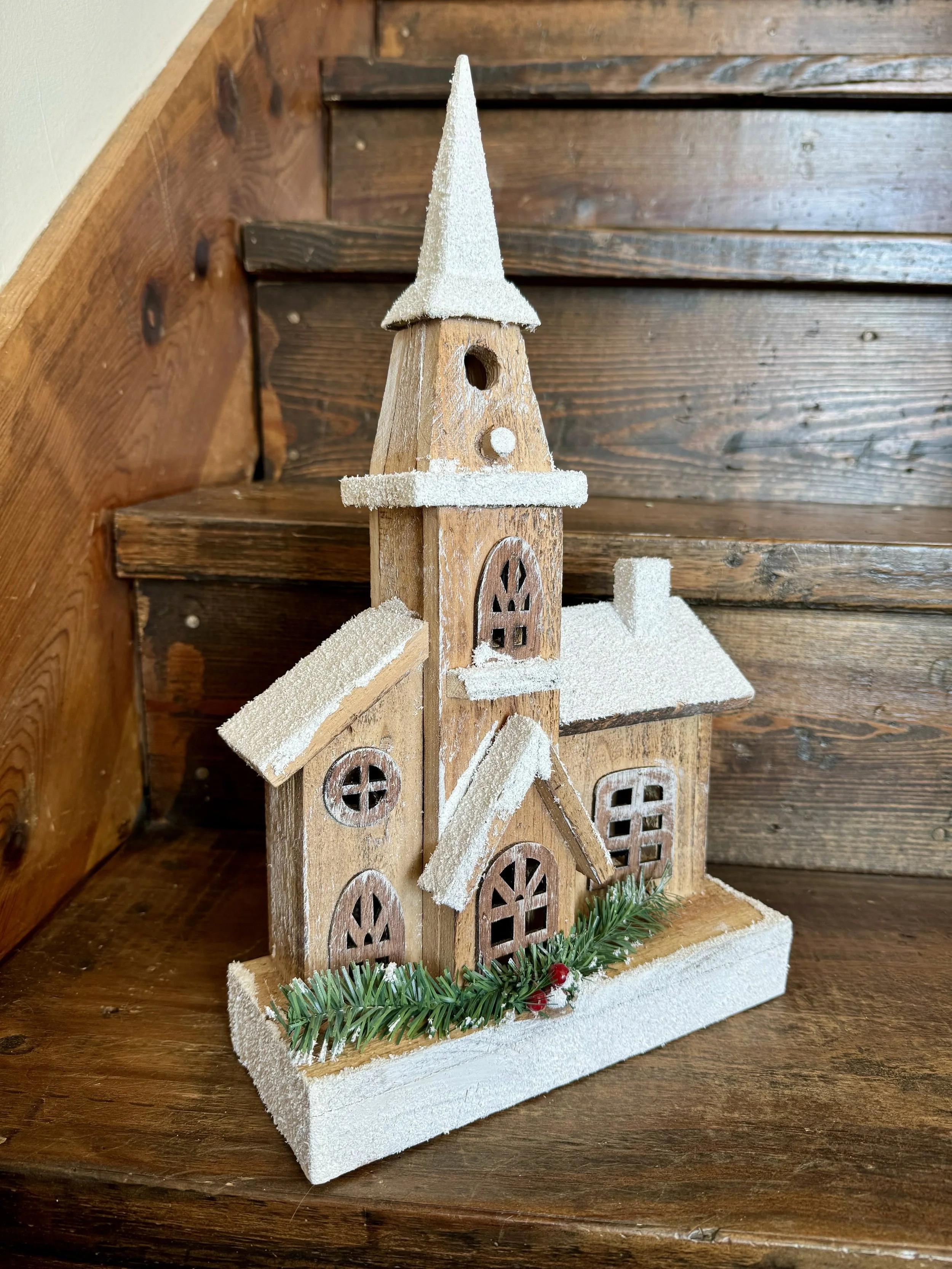 These wooden churches are the perfect addition to any Christmas mantle or display. They are battery operated and light up with turned on. You can choose to send it with a bow at no additional charge, or with Christmas greenery for just $10 more. Send one to your recipient and spread some Christmas cheer today!